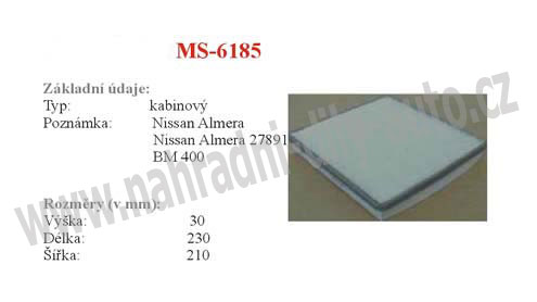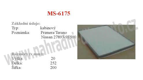 PYLOVÝ FILTR NISSAN PRIMERA [P12] 01/02-  - klikněte pro větší náhled Náhradní díly, autodíly PYLOVÝ FILTR NISSAN PRIMERA [P11] 06/96-07/02  - klikněte pro větší náhled Náhradní díly, autodíly PYLOVÝ FILTR NISSAN TERRANO II [R20] 10/92-  - klikněte pro větší náhled Náhradní díly, autodíly PYLOVÝ FILTR NISSAN MICRA [K11] 08/92-09/03  - klikněte pro větší náhled