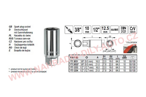 NÁSTAVEC NA SVÍČKY 3/8 16MM YATO YT-1253 NÁŘADÍ-KLÍČE-GOLA-přípravky NÁŘADÍ NA OPRAVU MOTORU- SVÍČKY-SONDY-VSTŘIKY aj. KLÍČ NA SVÍČKY