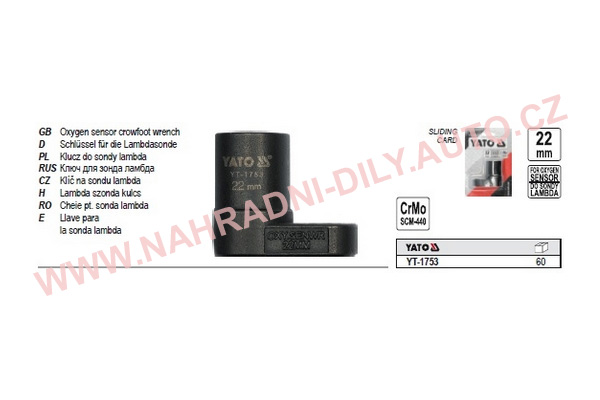 KLÍČ NA SONDU LAMBDA YATO YT-1753 NÁŘADÍ-KLÍČE-GOLA-přípravky NÁŘADÍ NA OPRAVU MOTORU- SVÍČKY-SONDY-VSTŘIKY aj. KLÍČE NA LAMBDA SONDY