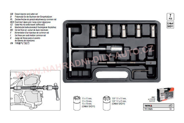 SADA FRÉZ PRO NAFTOVÉ VSTŘIKY COMMON RAIL YATO YT-17625 NÁŘADÍ-KLÍČE-GOLA-přípravky NÁŘADÍ NA OPRAVU MOTORU- SVÍČKY-SONDY-VSTŘIKY aj. FRÉZKY